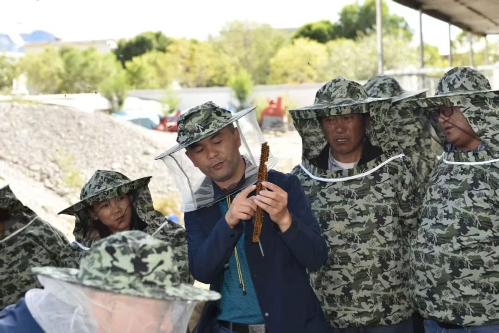 伍国强(左二)在西藏贡嘎参与养蜂培训活动。很近,