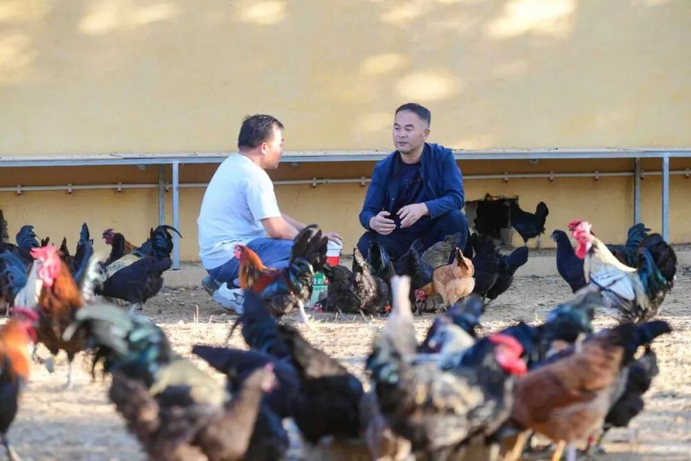 伍国强(右侧)开展“藏湘鸡”品种的育种与养殖工作