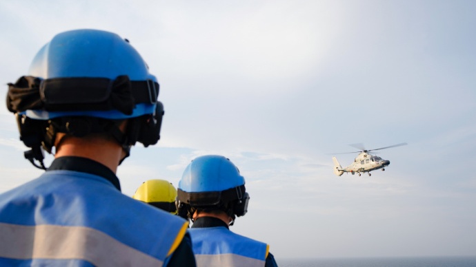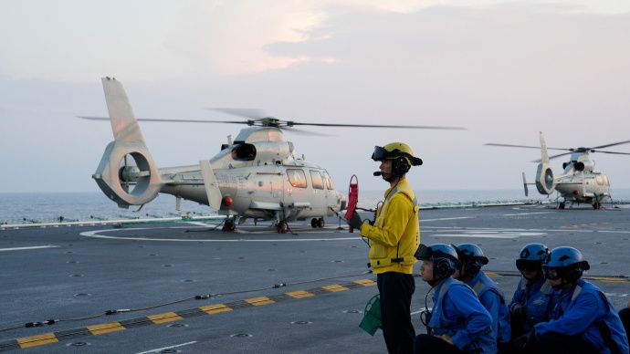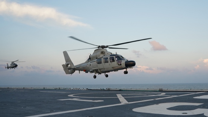 东部战区海军的练实一艘军舰上的航空队与直升机分队联手进行了一次实战化舰载直升机协同训练。他们通过连续的海军多项目训练,