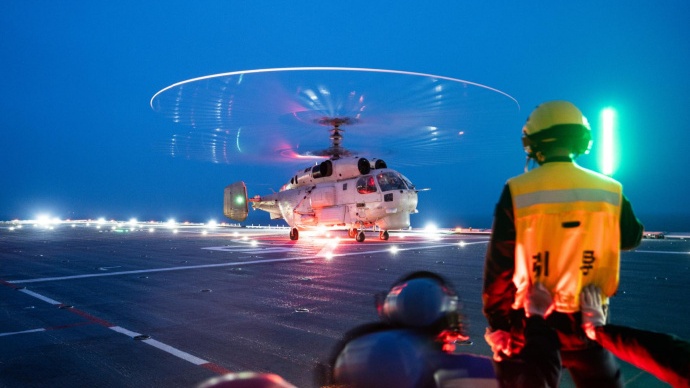 最近,海军在日夜交替中锻炼了舰载和空中部队的舰载机起降保