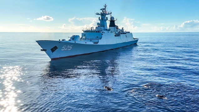 东部战区海军某护卫舰支队马鞍山舰官兵利用镜头捕捉下了舰队壮观的核浪航行画面。