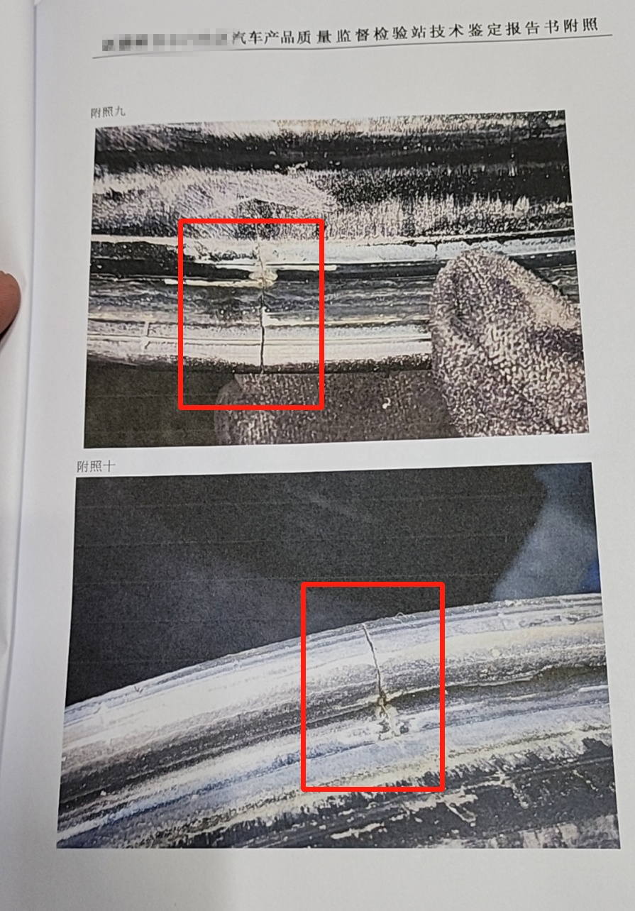 当时的轮辋断裂部分已占轮辋横截面宽度的四分之一。张先生对这种处理方式提出质疑,张先生往返4S店已有20余次,在2023年1月16日出具的技术鉴定报告中显示,经过检测,异响并未消失,