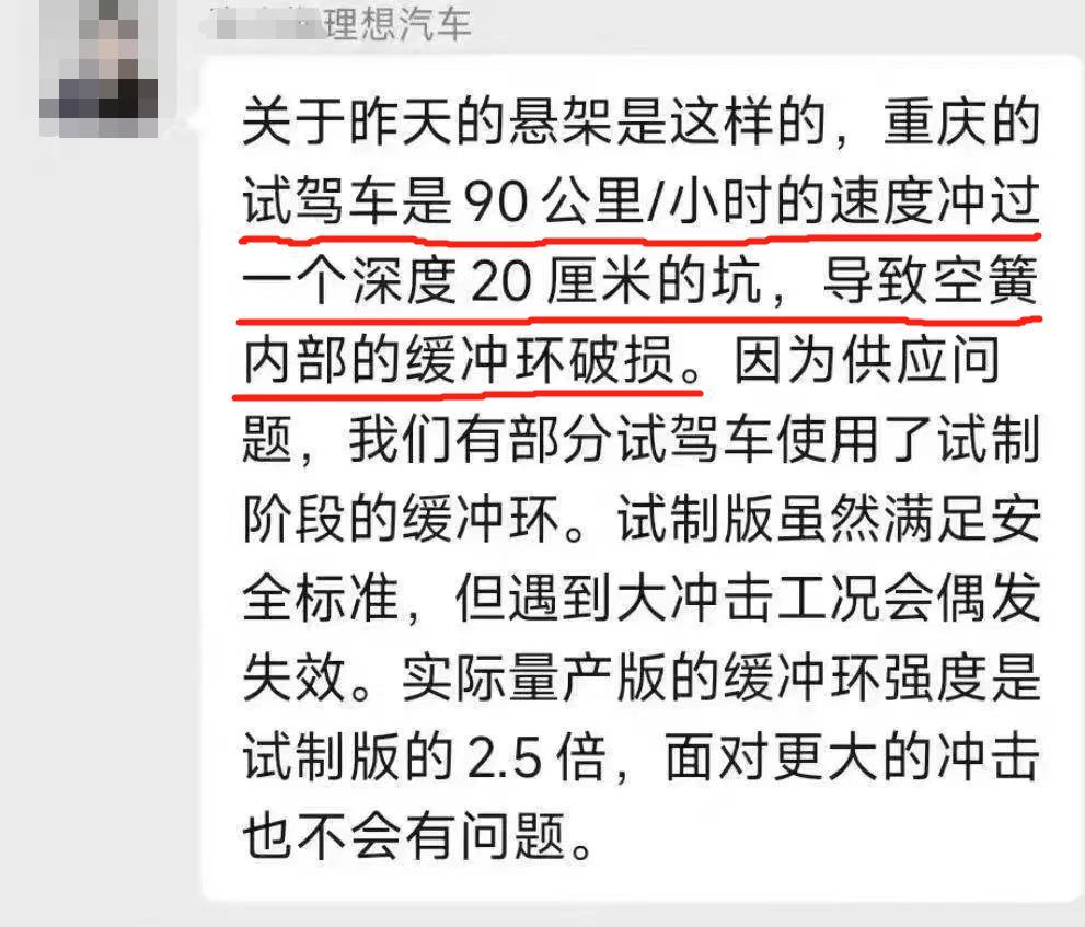 对于7月17日理想官方工作人员关于试驾车以90公里/小时的速度通过一个20厘米深坑而导致空气弹簧内部缓冲环破损的问题描述,此轮事件可能对终端销售产生影响,
