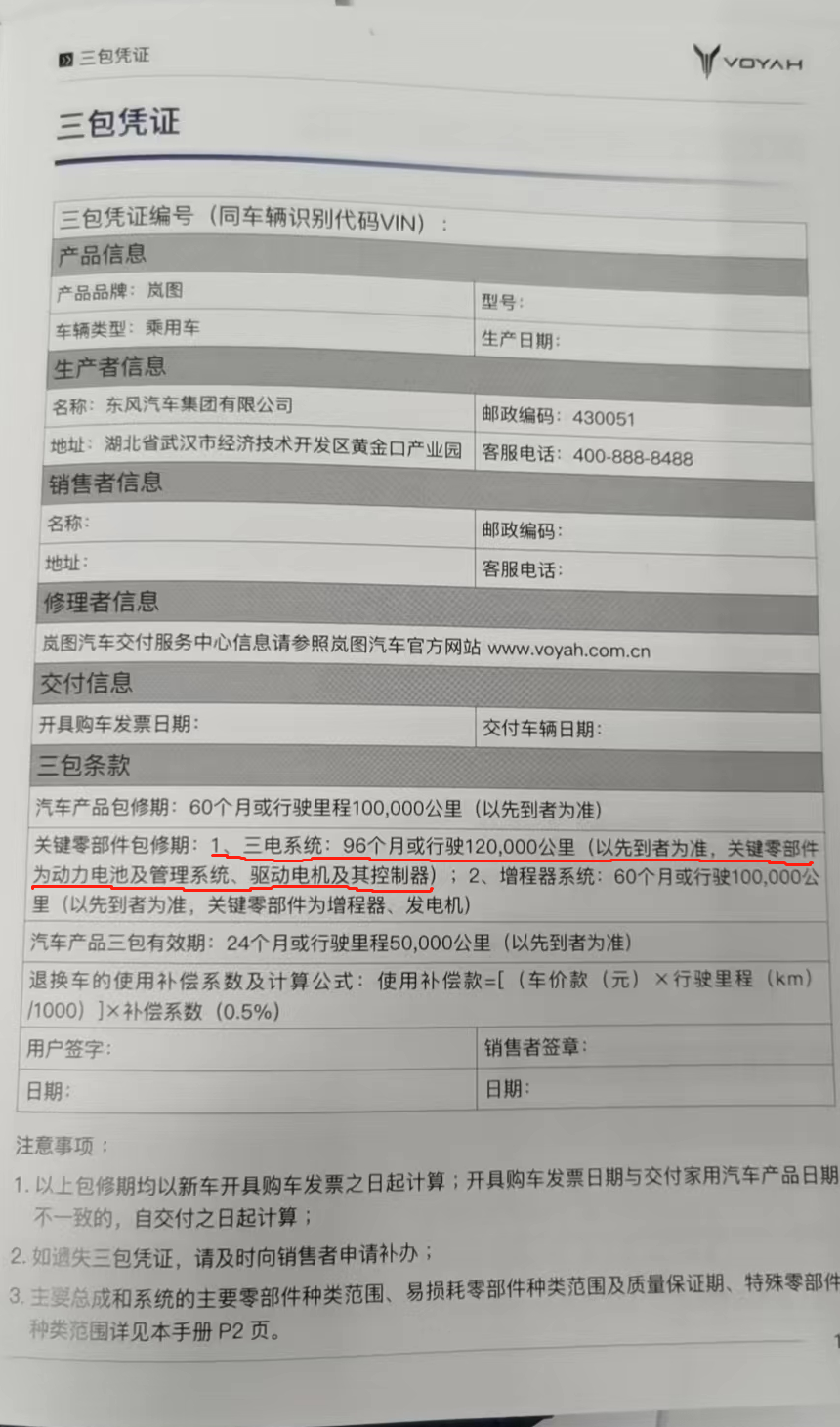 在接受采访时,车主距离提车时间仅仅为5天左右。规定的包修期为96个月或者12万公里,在六月中旬之前,