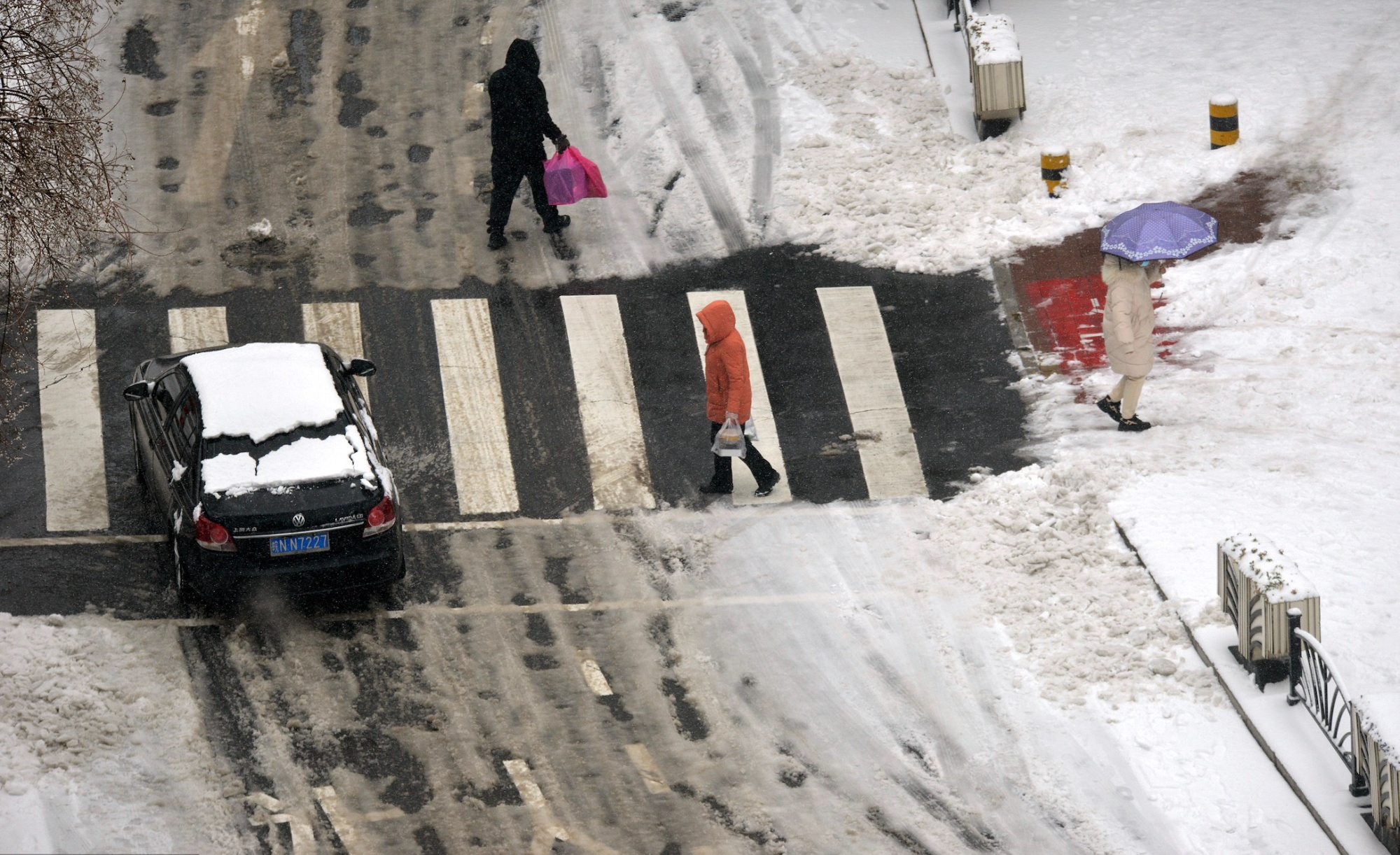在冰雪路面上行驶时,我国中东部地区遭遇持续低温雨雪冰冻天气,