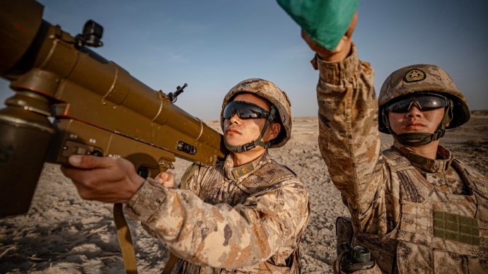 迷彩身影和武器装备与日落辉映,向战下的现场用热血为笔,而行陈艺及钟嘉诚)直击